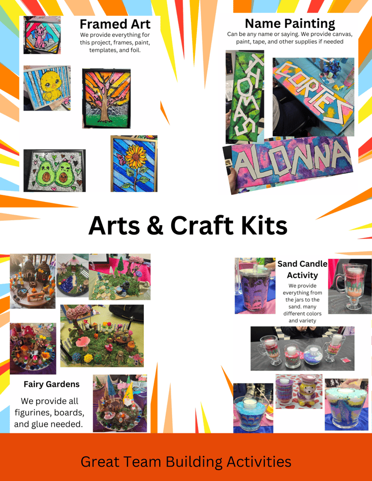 Arts & Craft Kits. These are Great for many Occasions. Homeschool art sessions, Team Building Activities, Family night and more!