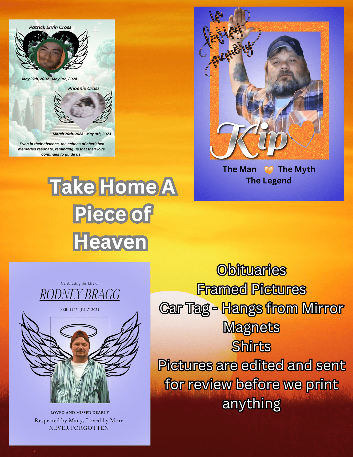 Take Home A Piece Of Heaven. Our Memorial treasures will stick with you forever.