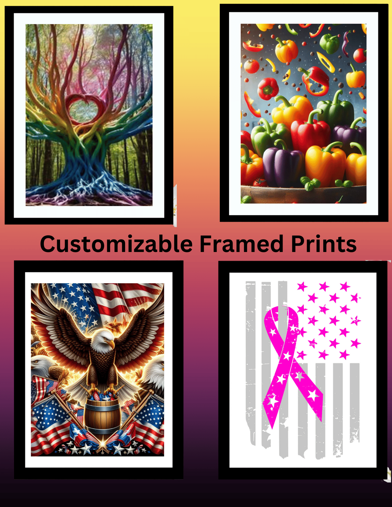Framed Pictures, we can do any theme or design. These come printed on a canvas and are frame already. Shipping included!