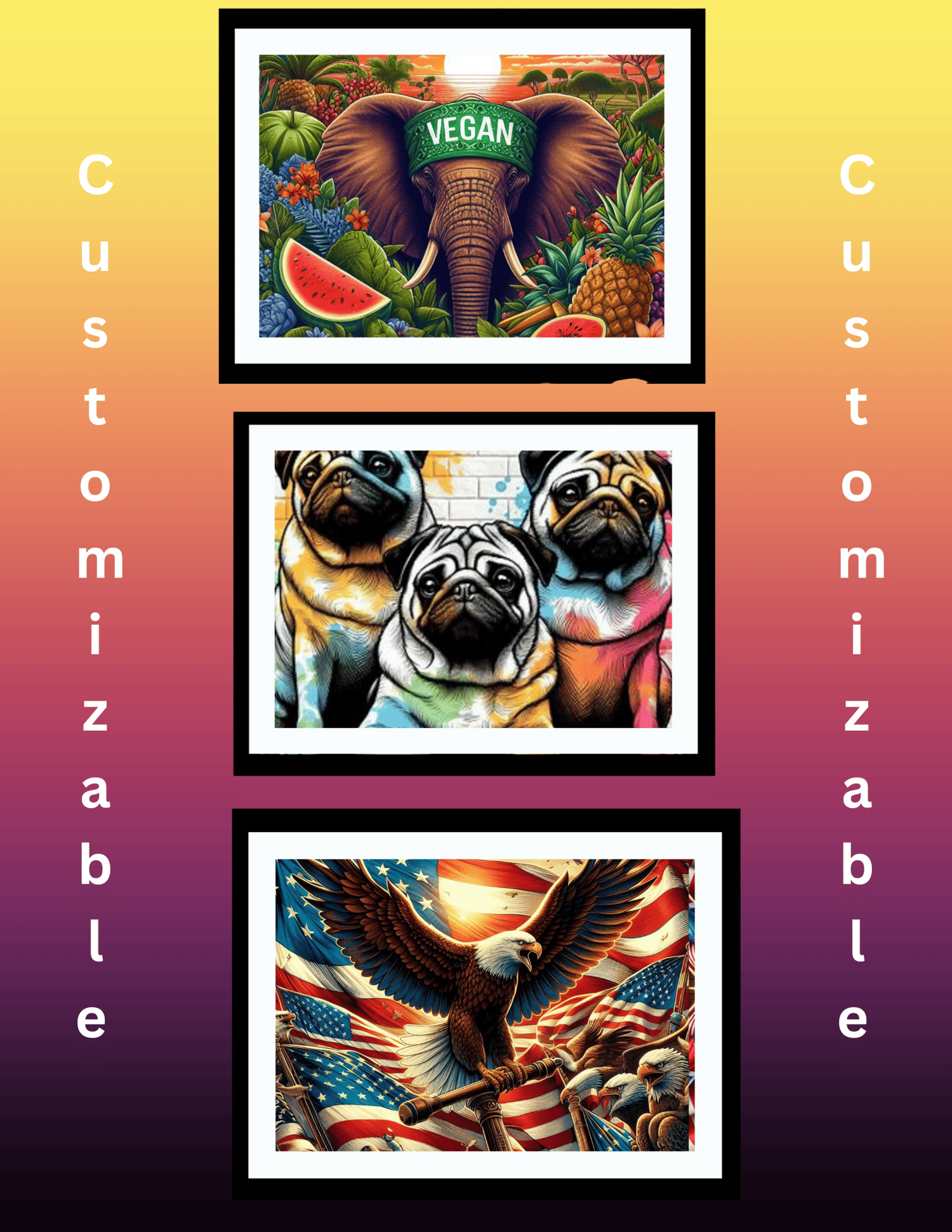 Framed Pictures, we can do any theme or design. These come printed on a canvas and are frame already. Shipping included!